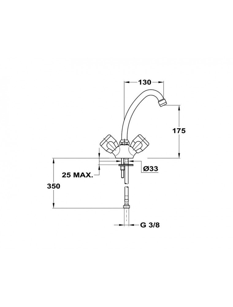 - Lánctartó szemmel - Forgatható kifolyócsővel - Kifolyócső: 130 mm - 7,5-9 l/perc vízátbocsátású vízkőmentes perlátorral - Perlátor mérete: M22x1 - Hagyományos felsőrésszel - Bekötőcső: flexibilis 3/8”