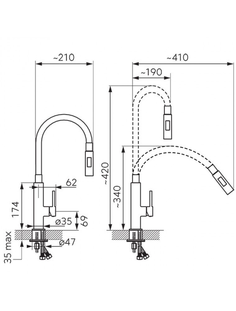 • szabadon hajlítható, flexibilis kifolyócső