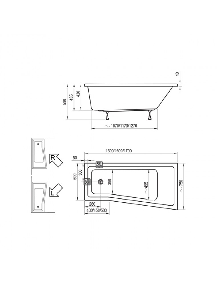 Ravak BeHappy II aszimmetrikus balos akril fürdőkád 1600 x 750 - C961000000