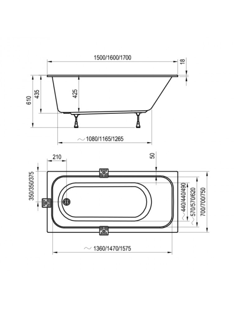 Ravak Chrome Slim vékony peremű akril fürdőkád 1500 x 700 - C721300000