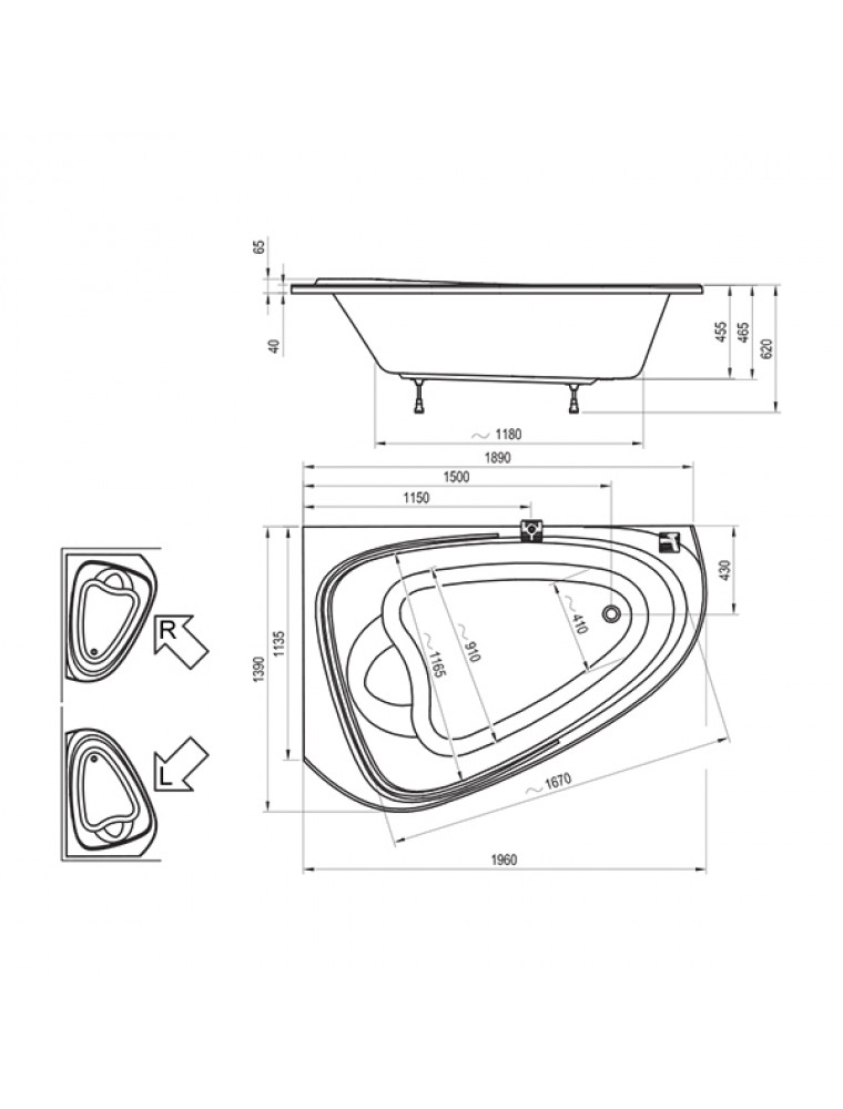 Kád : Ravak LoveStory II balos aszimmetrikus akril fürdőkád ...