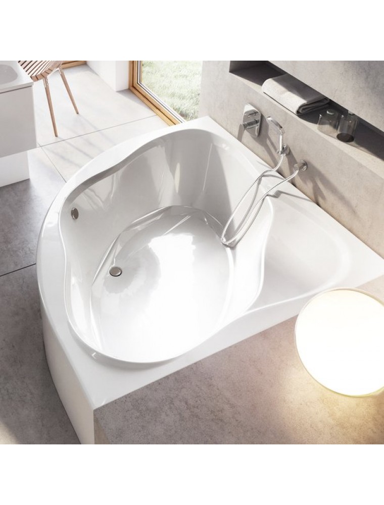 Modern és letisztult design. A tágas kialakításnak, a kellemesen döntött hátfalnak és a középre helyezett lefolyónak köszönhetően két ember számára is kényelmes fürdést biztosít. A szélesebb peremek és a vízfelszín feletti ülőke elég rakodófelületet nyújt, így mindent kézközelben tudhat.