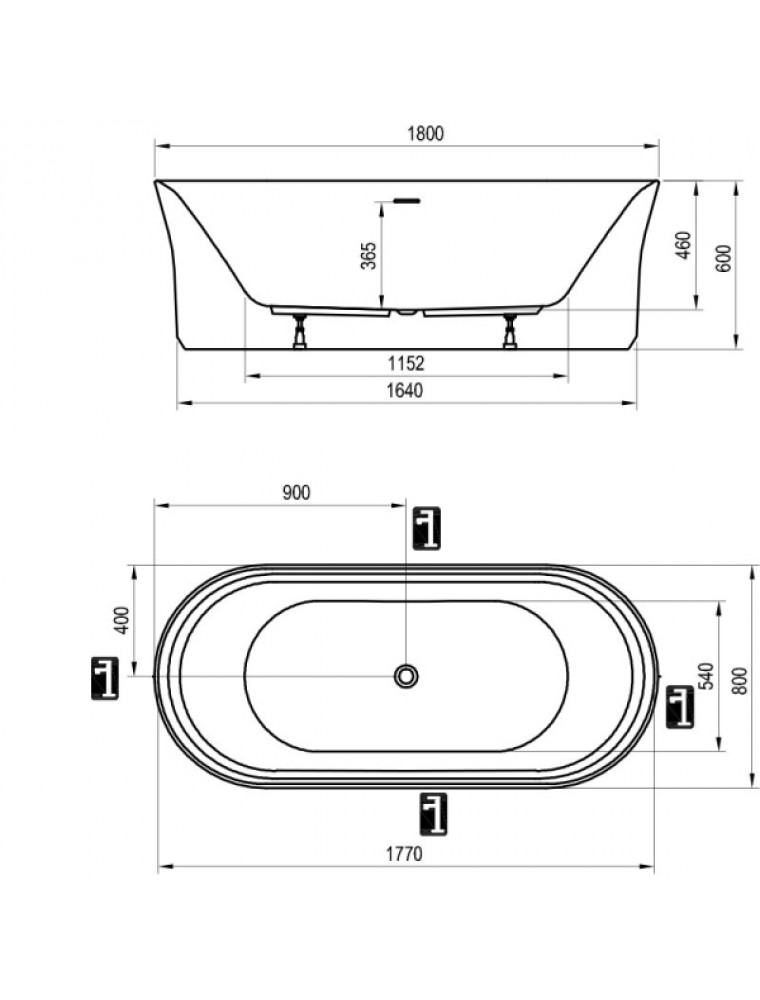 A kádat kádparavánnal nem lehetséges kiegészíteni. Valamennyi csőrendszert (a szennyvízcsatornázást és a padlóba épített csaptelep vízvezetékeit) a padló alatt szükséges elvezetni. A kád lefolyórendszere (azaz a túlfolyó, dugó, szívócső és szifon), valamint a támaszték (tartólábak) a csomagolás részét képezik.