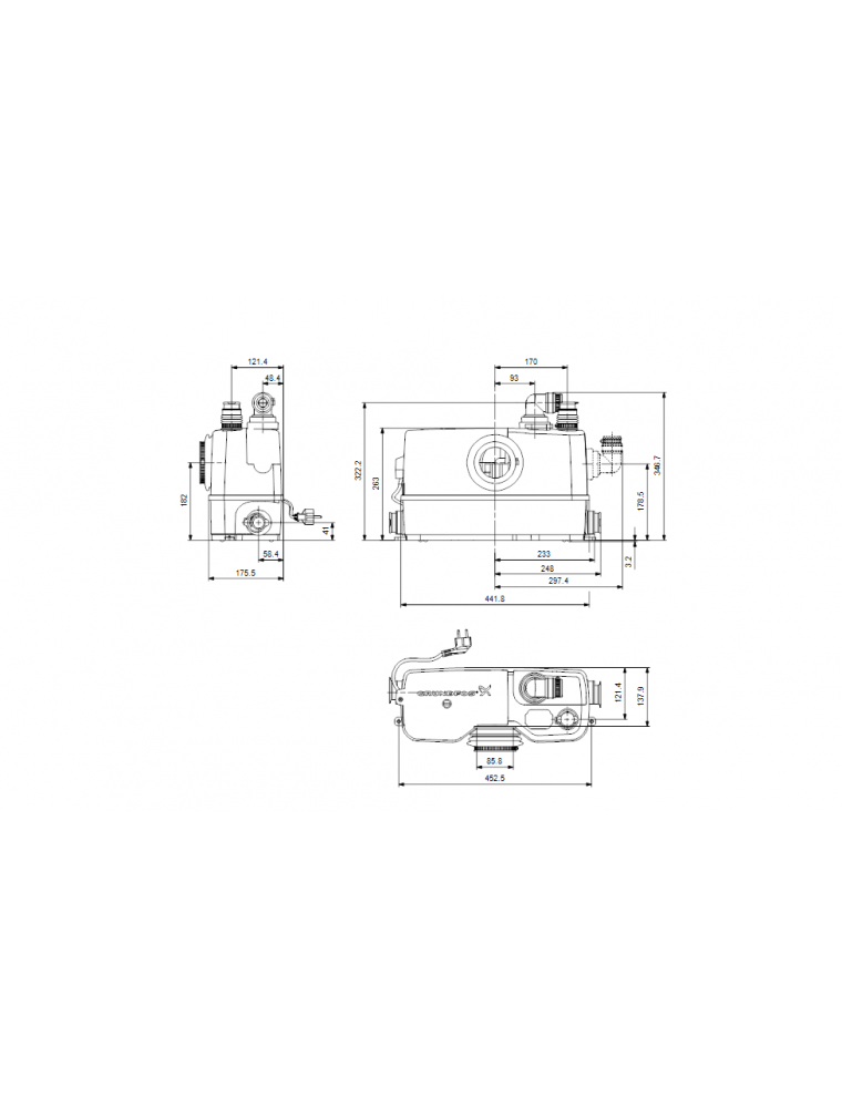 Grundfos Sololift2 WC-3 kompakt, beépítésre kész automata átemelő berendezés, integrált, erőteljes vágórendszerrel