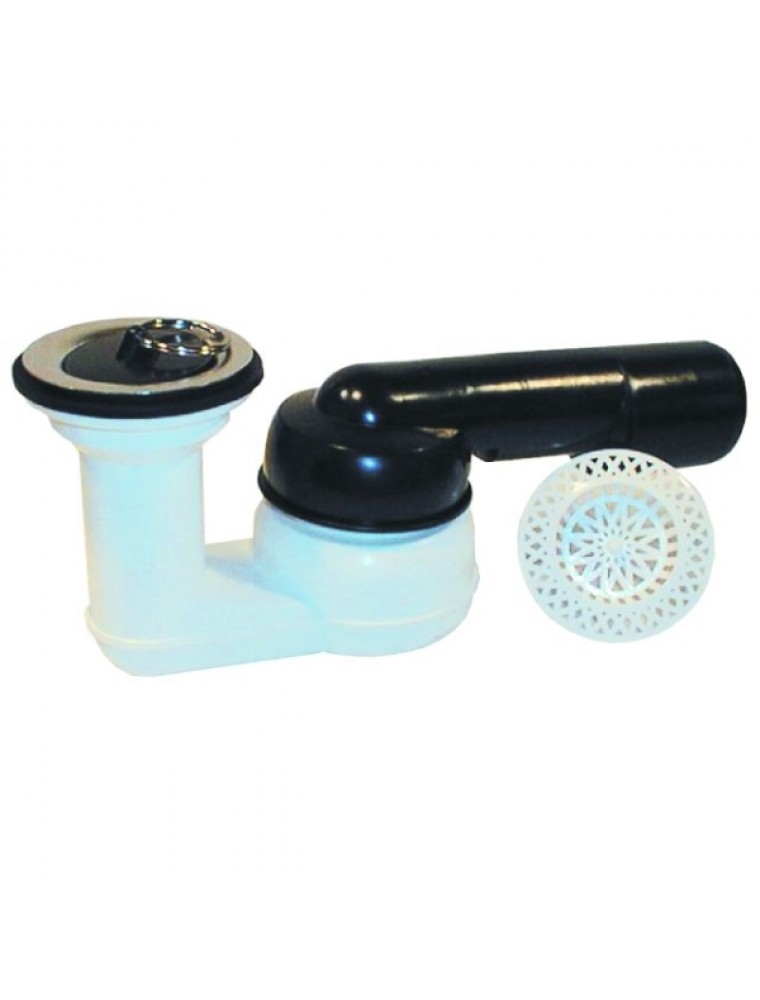 Zuhanytálca szifon, vízszintes DN40/50x6/4" gömbcsuklós kimenettel, 6/4" szeleppel, hajfogóval, dugóval