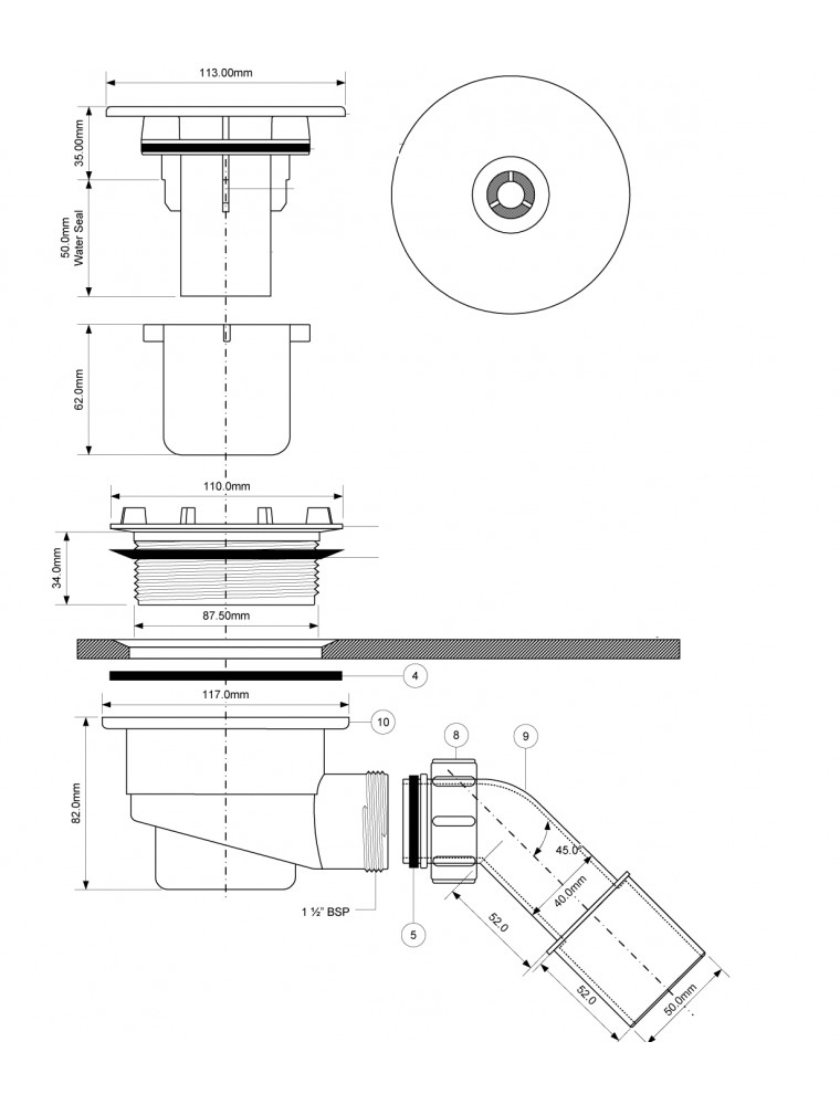 Mc Alpine HC zuhanyszifon 40/50+113mm, króm fedél