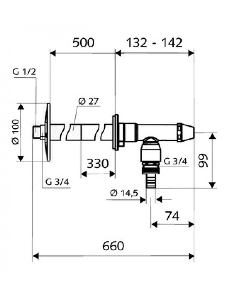 Beépítő szett A szelepülék a fal fagybiztos részében helyezkedik el 200 és 500 mm közötti falvastagság esetén A légbeszívó szelep gondoskodik minden elzárásnál a szerelvény automatikus kiürítéséről A fali átvezetést a vakolás előtt kell kiépíteni A hossz utólagos beállítása méretpontosan történjen Légbeszívó nélkül KISZERELÉS TARTALMA: Beépítőszett Fali átvezetés beépített szelepülékkel Szigetelőcső Elcsavarásbiztos falitartó Rögzítő alkatrészek Védődugó a beszereléshez Készreszerelő készlet Szerelvénytest dugókulcsos felső résszel és működtető fogantyúval Hosszú szelepbelső visszafolyásgátlóval Belső menetes fali takarórózsa Rögzítő alkatrészek Szerelési segédeszközök (vágóminta) FELHASZNÁLI TERÜLET / MŰSZAKI ADATOK: Vakolat előtti falazáshoz Szerelvény átmérője Ø 38 mm RÉSZLETEK: Material: sárgaréz a DIN EN szabványnak megfelelően Felület: matt króm Súly: 1.77 kg/db. Csomagolási egység: 1 Méret: DN 15 külső menet: 1/2