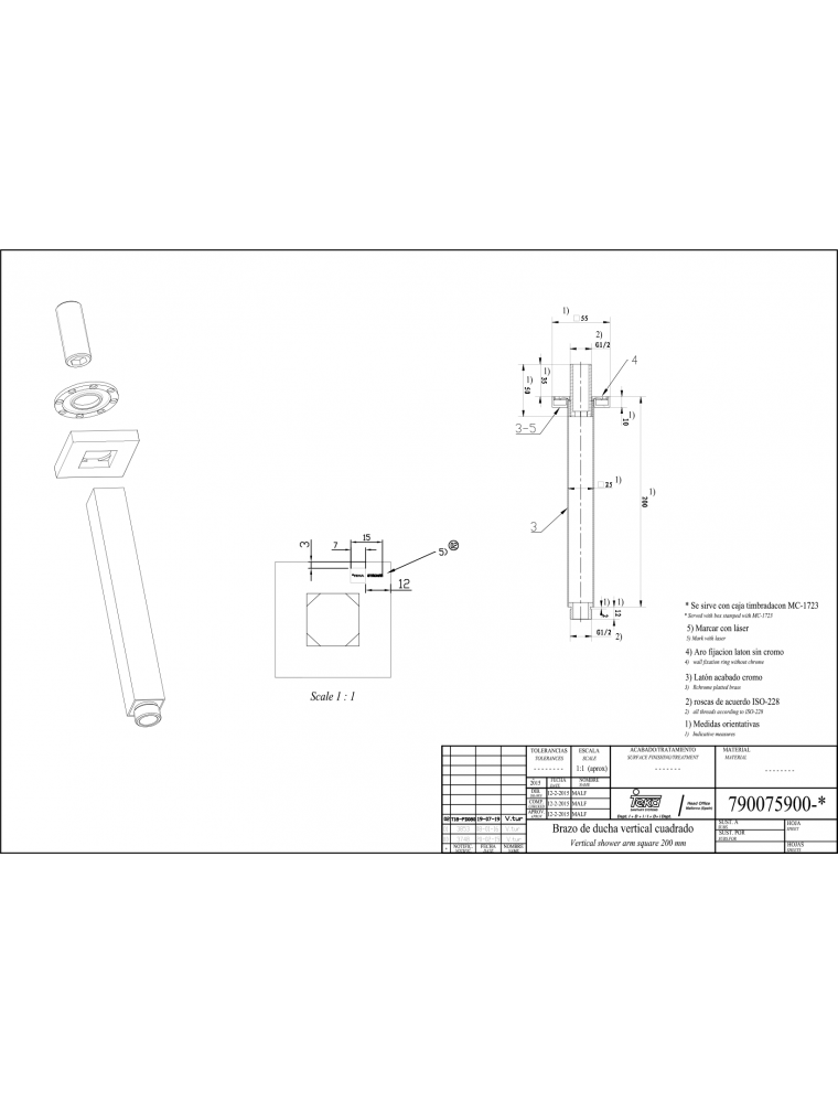 Teka Formentera függőleges zuhanykar 200mm