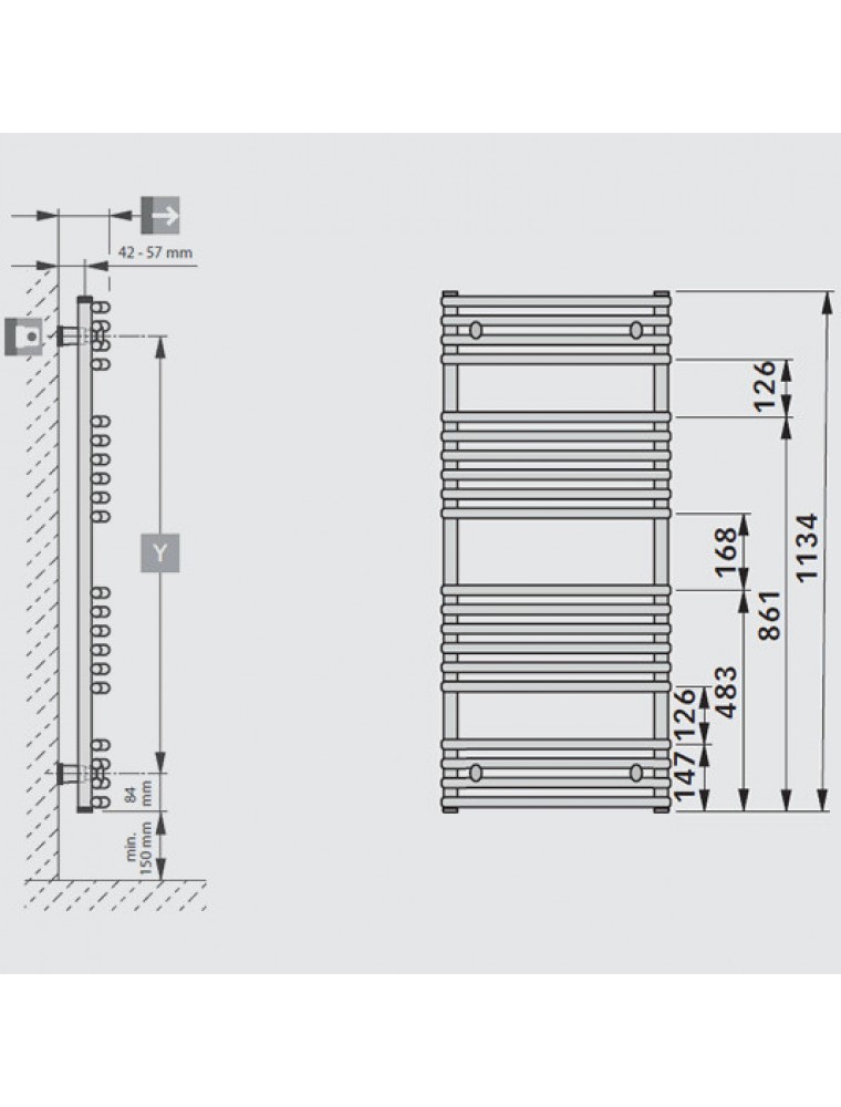 Törölköző szárító radiátor névleges magassága 1200 mm