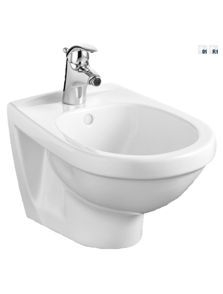 Gyártó: Alföldi Család: Saval Név: Fali Bidé Csapfurat: 1 furattal középen Cikkszám: 4312 00 xx Színek: R1 - fehér Tömeg: 18,80 kg Garancia: 10 év Szerelhető: Szerelése speciális tartószerelvényt igényel! Ajánlott csaptelep: Dynamic, Genic A megfelelő teherbírású falak esetén ajánljuk a csavaros felrögzítési módot. Itt a falra rögzítjük fel a falibidét tipli, ászokcsavar és műanyagal átétes csavar segítségével. Gyenge felépítésű falaknál feltétlenül ajánljuk teherbíró felületek kialakítását a bidé rögzítéséhez. Ilyen egyszerű és a teret sem foglaló megoldást nyújt a Villeroy & Boch Magyarország Kft. által forgalmazott rögzítőkeret. A rögzítőkeret beszerelése a padlóhoz történő lecsavarozással történik, amelyet a betonozást és a burkolást megelőzően kell elvégezni. A szerelés alkalmával nem csak a fal teherbíró képessége, hanem a vízvezetékek és az elfolyók falba történő elhelyezése is gyakran gondot okoz. Ilyen esetekben ajánljuk ezt a korszerű szerelési módot, a falsík előtti szereléstechnikát. Ezen termékek gyártója és forgalmazója pl.: a GEBERIT. A gyártási technológiából és az üvegszerű mázfelületből következően szanitertermékeink nem károsodnak hőingadozás hatására, éghetetlenek, statikusan terhelhetők, nem deformálódnak, nem igényelnek felületi kezelést, ellenállnak az oldószerek ill. a háztartásban használatos egyéb tisztítószerek káros hatásainak. Nagy töménységű savak, lúgok alkalmazása termékeink tisztításakor nem ajánlott, mivel azok rendszeres használat esetén megbontják a mázfelület egységét és mattulást okoznak. Emellett a felületet óvni kell a kemény fémek karcoló hatásától (tehát pl. fémszemcse tartalmú súrolószer alkalmazását nem javasoljuk). Az üvegszerű mázfelület és a kerámia fenti előnyei mellett egy nagy hátránnyal bír: rideg és emiatt törékeny, ezért óvni kell a hirtelen mechanikai hatásoktól, ütésektől, mert az a máz, nagyobb dinamikus igénybevétel esetén maga a termék törését eredményezheti. Az ilyen, nem rendeltetésszerű használat (pl. bármilyen tárgy termékbe történő beleejtése) során keletkezett károkért nem áll módunkban felelősséget vállalni.- Gyártó: Alföldi