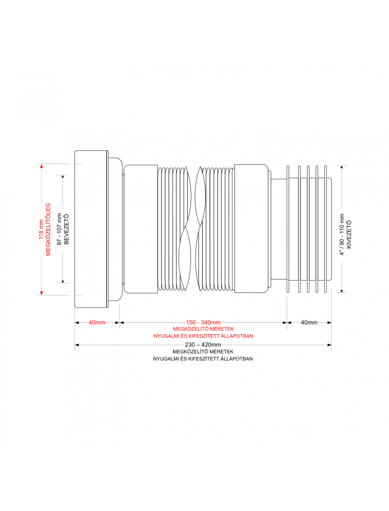 Mc Alpine HC Wc bekötő flexibiliscső, lamellás, 230mm-440mm-ig nyújtható