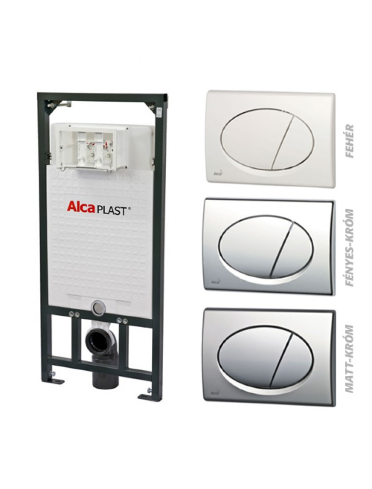 Vásároljon Alcaplast nyomólapos szettet, hogy a legjobb áron legyen az Öné! Az akciós szett tartalmazza: 1. Falba építhető WC tartály szerelőkerettel (A101) 2. Matt-króm színű nyomólap (M72) A tartályokra 6 év garancia valamint az alkatrészellátás is biztosított! Az AlcaPLAST jelenleg Közép- és Kelet-Európa legnagyobb szanitáris technikáját gyártó cégeinek egyike. A cég a hagyományos töltő- és öblitőszelepek mellett, előfal mögé építhető wc -tartály rendszerek, műanyag wc-tartályok, fürdőkád- és zuhanytálca szifonok gyártásával is foglalkozik. Az Alcaplast műszaki szakértői a legnagyobb hangsúlyt arra fektetik, hogy termékeik meghibásodás-mentesen működjenek, hogy ellenálljanak a helytelen kezelésnek, működésük halk legyen, valamint az összes alkatrész megbízhatóságára.